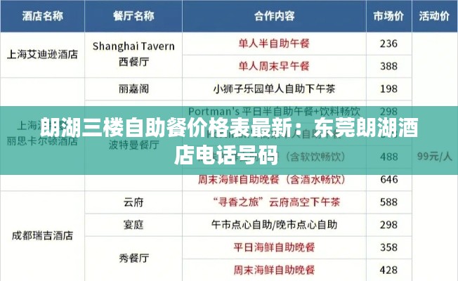朗湖三樓自助餐的價(jià)格分為幾個(gè)不同的時(shí)段和套餐,以滿足不同消費(fèi)者的需求。以下是最新的價(jià)格概覽: