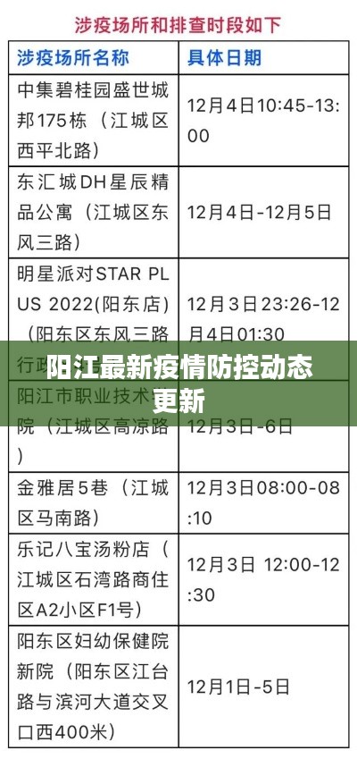 隨著新冠疫情的再次反彈,全國各地疫情防控形勢(shì)嚴(yán)峻,陽江市作為廣東省的重要城市之一,疫情防控工作也備受關(guān)注,本文將圍繞“今日陽江疫情最新防控”這一主題,介紹當(dāng)前陽江市疫情防控的最新動(dòng)態(tài)和措施。