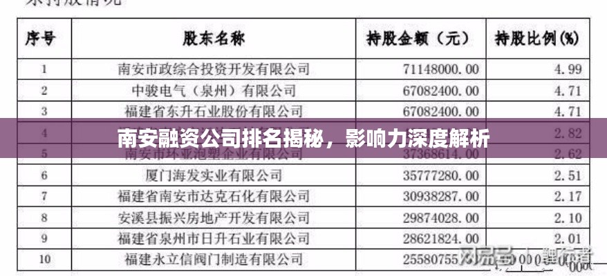 南安融資公司排名揭秘,影響力深度解析