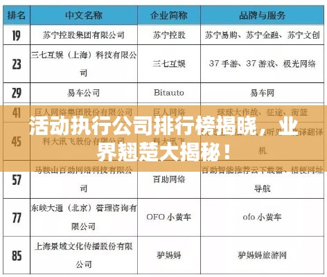 活動(dòng)執(zhí)行公司排行榜揭曉,業(yè)界翹楚大揭秘!