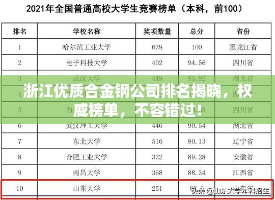 隨著制造業(yè)的飛速發(fā)展,合金鋼作為重要的材料,其市場需求日益旺盛,浙江作為中國的經(jīng)濟強省,擁有一批在國內(nèi)外享有盛譽的優(yōu)質(zhì)合金鋼公司,本文將為您介紹浙江優(yōu)質(zhì)合金鋼公司的排名,以幫助您更好地了解這一領(lǐng)域的發(fā)展?fàn)顩r。