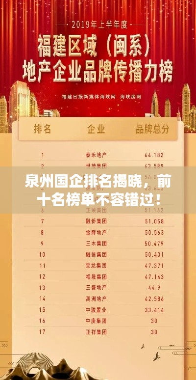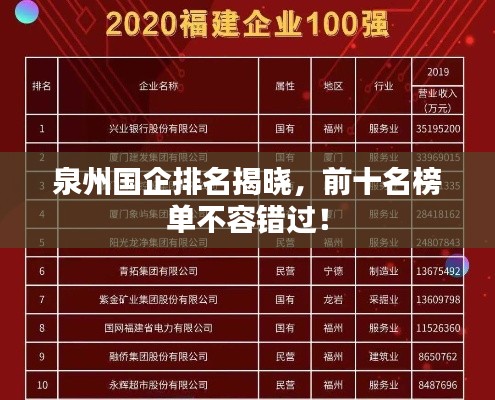 泉州國企排名揭曉,前十名榜單不容錯過!