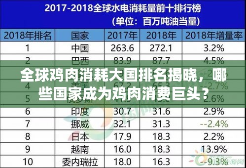 在全球經(jīng)濟(jì)高速發(fā)展的今天,人們的生活水平不斷提高,飲食習(xí)慣也隨之改變,在眾多肉類食品中,雞肉因其營養(yǎng)豐富、口感鮮美而備受青睞,本文將為您揭示全球雞肉消耗排名,帶您了解哪些國家在雞肉消費上走在世界前列。