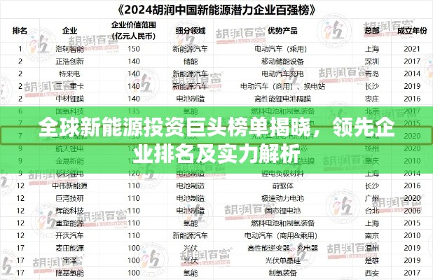 全球新能源投資巨頭榜單揭曉,領(lǐng)先企業(yè)排名及實(shí)力解析