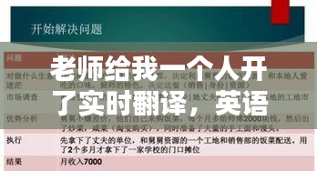 那是一個(gè)普通的周五下午,我坐在教室里,準(zhǔn)備結(jié)束一周的學(xué)習(xí)。突然,我的老師走到我面前,微笑著說(shuō):“嘿,我知道你英語(yǔ)不是母語(yǔ),有時(shí)候理解起來(lái)可能會(huì)有點(diǎn)困難。今天,我想給你一個(gè)人開(kāi)個(gè)實(shí)時(shí)翻譯,看看是否對(duì)你有幫助?!甭?tīng)到這句話,我感到既驚訝又感激,沒(méi)想到老師會(huì)如此細(xì)心地注意到我的需求。