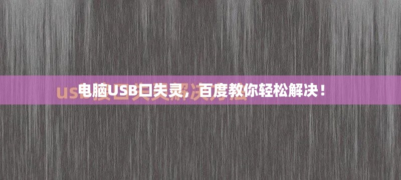 遇到電腦USB口無(wú)法使用的情況,相信很多用戶都會(huì)感到困擾,這個(gè)問(wèn)題可能出現(xiàn)在各種品牌和型號(hào)的電腦上,無(wú)論是Windows系統(tǒng)還是Mac系統(tǒng),都有可能出現(xiàn)此類問(wèn)題,當(dāng)您遇到這樣的問(wèn)題時(shí),不妨先“百度一下”,獲取一些可能的解決之道。