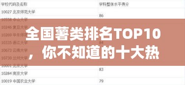 薯類作物在我國(guó)各地廣泛種植,因其營(yíng)養(yǎng)豐富、口感獨(dú)特而備受消費(fèi)者喜愛,本文將介紹全國(guó)薯類排名前十名,讓您了解哪些薯類作物在市場(chǎng)上備受歡迎。