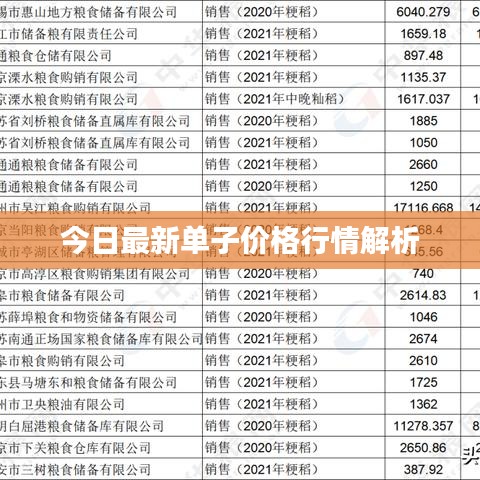 今日最新單子價格行情解析
