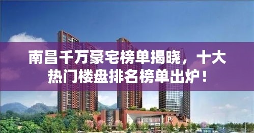 南昌千萬(wàn)豪宅榜單揭曉,十大熱門樓盤排名榜單出爐!