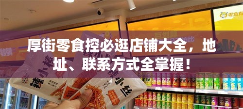 就是厚街最新零食店鋪的地址和聯(lián)系電話,這些店鋪不僅提供豐富的零食選擇,還注重食品品質(zhì)和客戶服務(wù),無(wú)論您是想品嘗國(guó)內(nèi)外特色零食,還是尋找健康營(yíng)養(yǎng)食品,這些店鋪都能滿足您的需求,希望這篇文章能幫助您輕松找到心儀的零食店,享受美食的樂趣。