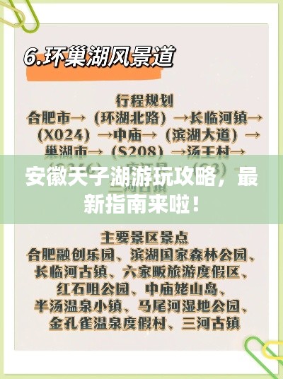 安徽,這片充滿古老韻味與生機(jī)活力的土地,以其獨(dú)特的風(fēng)貌吸引著無數(shù)游客,天子湖作為安徽省的一顆璀璨明珠,更是備受矚目,本文將為你提供最新的安徽天子湖攻略,幫助你更好地領(lǐng)略這片湖光山色的魅力。