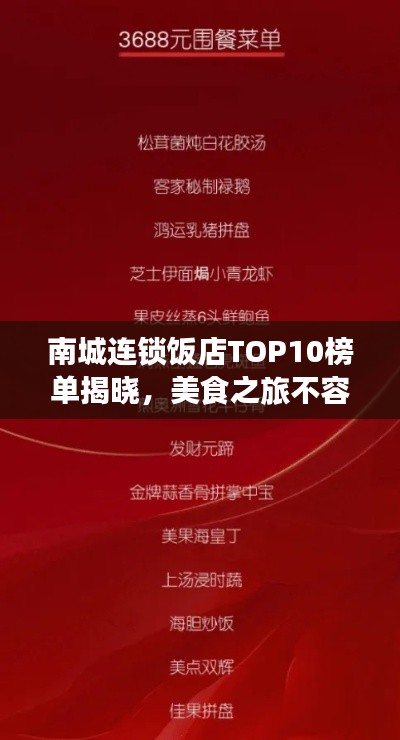 南城連鎖飯店TOP10榜單揭曉,美食之旅不容錯(cuò)過(guò)!