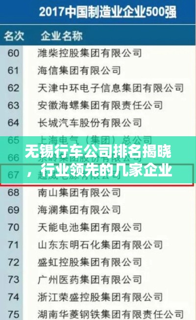 隨著經(jīng)濟的快速發(fā)展,無錫的行車行業(yè)也取得了長足的發(fā)展,眾多行車公司紛紛涌現(xiàn),為市民提供了多元化的交通服務(wù),本文將介紹無錫行車公司的排名,以便市民更好地了解并選擇適合自己的交通服務(wù)。