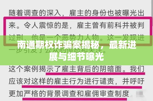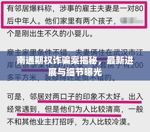 南通期權(quán)詐騙案揭秘,最新進展與細節(jié)曝光