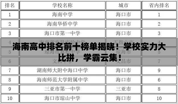 海南高中排名前十榜單揭曉!學(xué)校實(shí)力大比拼,學(xué)霸云集!