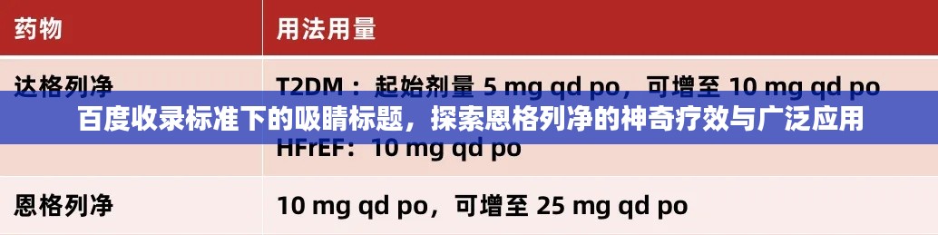 百度收錄標(biāo)準(zhǔn)下的吸睛標(biāo)題,探索恩格列凈的神奇療效與廣泛應(yīng)用