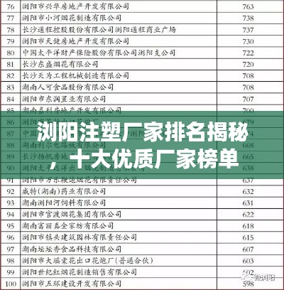 瀏陽注塑廠家排名揭秘,十大優(yōu)質(zhì)廠家榜單