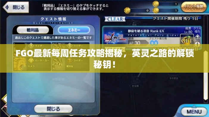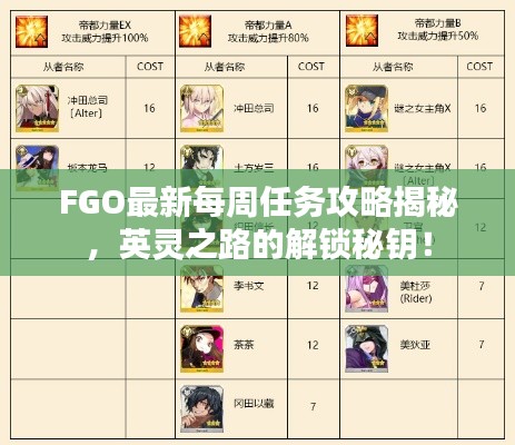 FGO最新每周任務攻略揭秘,英靈之路的解鎖秘鑰!