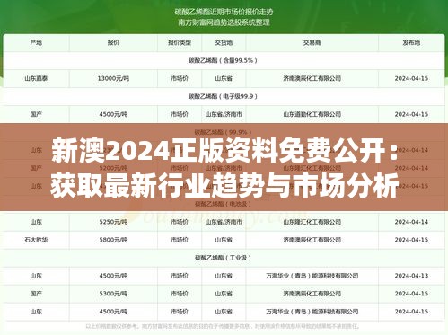 新澳2024正版資料免費公開:獲取最新行業(yè)趨勢與市場分析的寶貴資源!