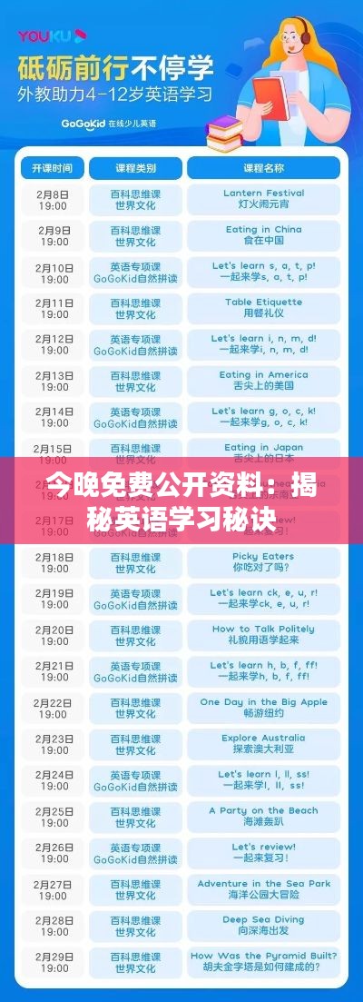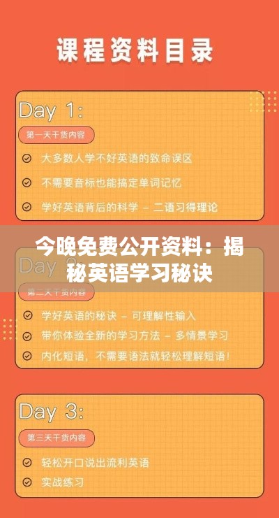 隨著全球化的發(fā)展,英語作為國際交流的通用語言,其重要性不言而喻。無論是在工作中,還是日常生活里,掌握一定的英語能力都顯得至關重要。《今晚免費公開資料:揭秘英語學習秘訣》這部文獻資料,旨在為英語學習者提供科學、系統(tǒng)的學習指南,幫助他們更高效地掌握英語。本文將詳細介紹這部文獻的內(nèi)容,從學習理念、方法技巧,到實踐案例,全方位解析英語學習的秘籍。