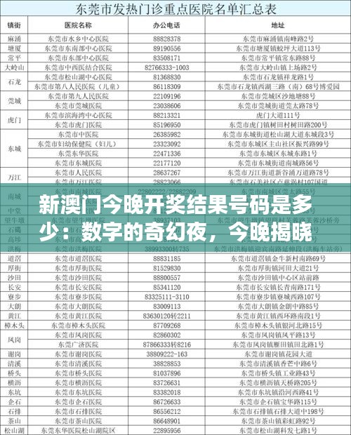 新澳門今晚開獎結(jié)果號碼是多少:數(shù)字的奇幻夜,今晚揭曉