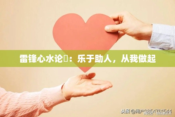 “樂于助人,從我做起”號召我們首先從個人做起,通過具體的行動實踐“雷鋒精神”。對于每一個個體而言,以實際行動幫助他人,將會產(chǎn)生正面的示范效應,從而帶動周圍的人以慈善、誠懇的態(tài)度行事,共同促進社會的進步和和諧。通過言行一致的實行“樂于助人”,塑造個體人格魅力,在社會實踐中積累經(jīng)驗并獲得成就,形成良好的社會風尚。