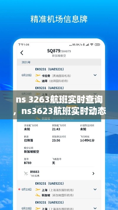 隨著航空業(yè)的快速發(fā)展,人們對(duì)航班信息的實(shí)時(shí)查詢需求日益增長(zhǎng)。ns 3263航班作為一條重要的空中航線,連接了眾多城市,為旅客提供了便捷的出行選擇。本文將為您詳細(xì)介紹如何實(shí)時(shí)查詢ns 3263航班的詳細(xì)信息,包括航班狀態(tài)、預(yù)計(jì)到達(dá)時(shí)間、行李托運(yùn)等,幫助您輕松掌握航班動(dòng)態(tài)。