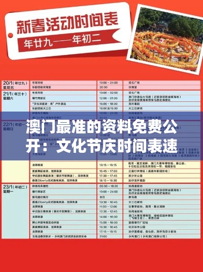 澳門最準的資料免費公開:文化節(jié)慶時間表速查