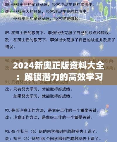 2024新奧正版資料大全:解鎖潛力的高效學(xué)習(xí)方法