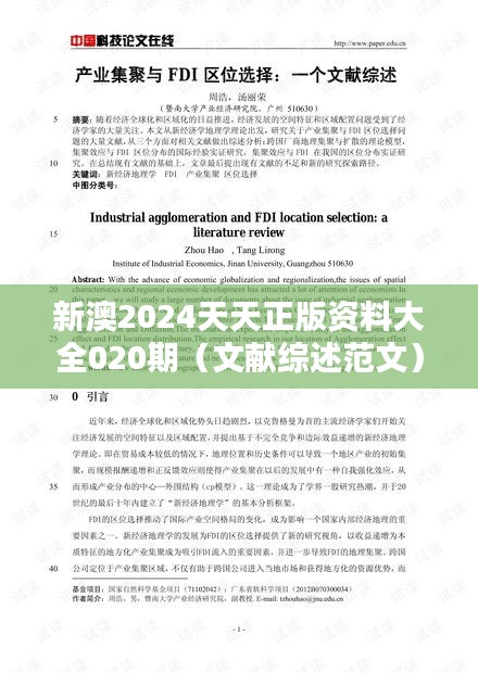 "新澳2024天天正版資料大全020期(文獻(xiàn)綜述范文)"是一個包含廣泛學(xué)術(shù)信息的文獻(xiàn)資源,旨在為廣大研究人員和學(xué)生提供一個全面的資料集。本文將詳細(xì)介紹該資料大全的內(nèi)容,以便于讀者能夠更好地理解和利用這些資源。