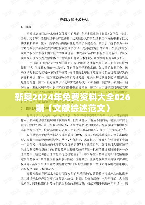 "新奧2024年免費資料大全026期(文獻綜述范文)"是一個覆蓋廣泛主題的資料匯編,旨在為研究人員、學生及對某一領域感興趣的普通讀者提供一個綜合性的信息資源庫。本期資料涵蓋了多個學科領域的文獻,包括社會科學、自然科學、技術(shù)進步等多個方面,以便讀者深入理解各個領域的最新研究進展和發(fā)展趨勢。