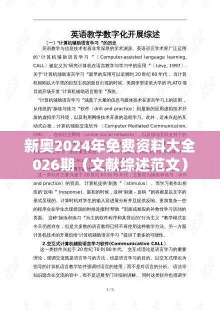 新奧2024年免費資料大全026期(文獻綜述范文)