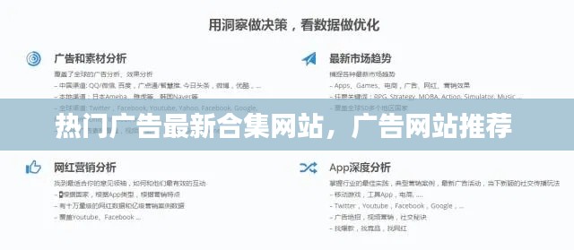 隨著互聯(lián)網(wǎng)的快速發(fā)展,廣告行業(yè)也迎來(lái)了前所未有的變革。如今,廣告不再僅僅局限于電視、廣播和報(bào)紙,而是拓展到了網(wǎng)絡(luò)這個(gè)廣闊的天地。為了滿足廣大廣告愛(ài)好者和專(zhuān)業(yè)人士的需求,越來(lái)越多的熱門(mén)廣告合集網(wǎng)站應(yīng)運(yùn)而生。本文將為您推薦一些最新的熱門(mén)廣告合集網(wǎng)站,讓您輕松瀏覽到全球各地的精彩廣告。