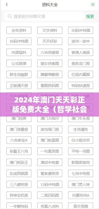 "2024年澳門(mén)天天彩正版免費(fèi)大全(哲學(xué)社會(huì)科學(xué)文獻(xiàn)中心)"是一部專(zhuān)注于澳門(mén)哲學(xué)社會(huì)科學(xué)領(lǐng)域的發(fā)展動(dòng)態(tài)和研究成果的文獻(xiàn)資料。它不僅詳細(xì)記錄了2024年在澳門(mén)哲學(xué)社會(huì)科學(xué)領(lǐng)域的重大發(fā)現(xiàn)和研究進(jìn)展,還針對(duì)免費(fèi)提供給公眾的研究成果進(jìn)行了梳理和總結(jié)。本文獻(xiàn)大全旨在為澳門(mén)乃至全球的研究者和學(xué)者提供一個(gè)全面、權(quán)威的信息來(lái)源,促進(jìn)學(xué)術(shù)交流和知識(shí)傳播。