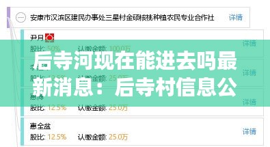后寺河現(xiàn)在能進(jìn)去嗎最新消息:后寺村信息公眾平臺