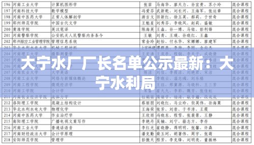 標(biāo)題:大寧水廠廠長名單公示最新更新
