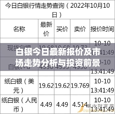 隨著全球經(jīng)濟(jì)形勢(shì)的不斷變化,白銀市場(chǎng)日益受到關(guān)注,本文將圍繞“白銀今日?qǐng)?bào)價(jià)最新”這一主題,分析當(dāng)前市場(chǎng)走勢(shì),展望投資前景,幫助投資者更好地把握市場(chǎng)機(jī)遇。