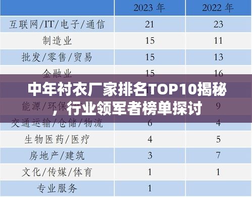 中年襯衣廠家排名TOP10揭秘,行業(yè)領(lǐng)軍者榜單探討