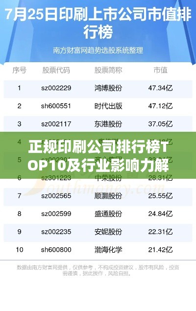 隨著科技的進(jìn)步和行業(yè)的發(fā)展,印刷行業(yè)也在不斷地演變和壯大,在這個行業(yè)中,眾多的印刷公司以其卓越的服務(wù)、高質(zhì)量的產(chǎn)品和創(chuàng)新能力脫穎而出,贏得了廣大客戶的信賴和贊譽,本文將探討正規(guī)印刷公司的排名及其行業(yè)影響力。