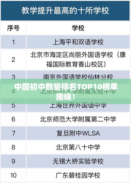 隨著中國教育事業(yè)的不斷發(fā)展,初中的數(shù)量也在不斷增加,有許多初中的教育質(zhì)量和辦學(xué)水平都非常優(yōu)秀,其中排名前十名的初中更是備受關(guān)注,本文將介紹中國初中數(shù)量排名前十名的情況。