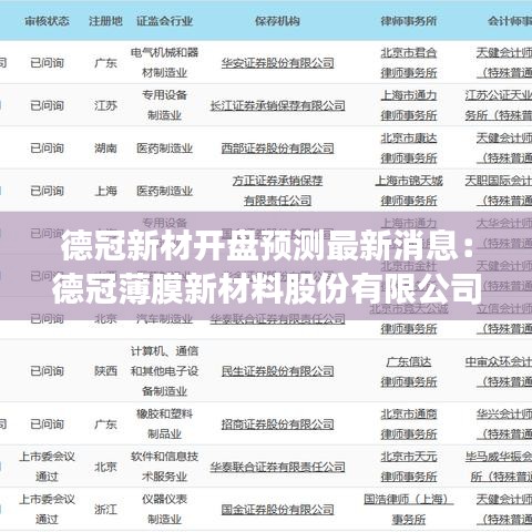 德冠新材開盤預(yù)測背景介紹